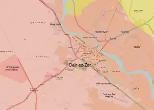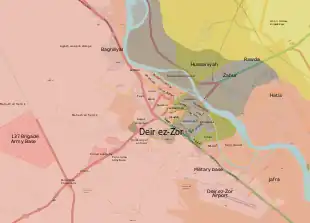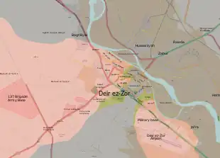 Le 25 octobre, l'armée syrienne reprend le contrôle de la zone industrielle de Deir ez-Zor[203]. Le 26 octobre, elle s'empare de l'île d'Hawijet Sakr[204].