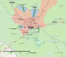 En mai 2017, les rebelles lancent une nouvelle offensive dans le quartier de Manchiyé[66]. Mais en juin, l'armée syrienne, le Hezbollah et les milices chiites irakiennes acheminent des renforts et contre-attaquent[66],[67]. Le 1er juin, au moins 13 rebelles et trois civils sont tués par l'explosion d'un engin explosif sur une route et par un bombardement du régime syrien dans le nord-ouest du gouvernorat de Deraa[68]. Dans les jours qui suivent la ville de Deraa — contrôlée à 60 % par les rebelles[69] — est intensément bombardée, notamment avec des roquettes, des bombes baril, et des engins explosifs remplis de shrapnel[67]. Le 17 juin, l'armée syrienne décrète un cessez-le-feu de 48 heures à Deraa[69]. Les combats reprennent cependant rapidement : le 20 juin, au moins 12 soldats et miliciens loyalistes sont tués et plusieurs autres blessés ou fait prisonniers[70]. Selon Bellingcat, 103 à 123 combattants loyalistes sont tués dans la région de Deraa entre le 4 juin et le 7 juillet 2017[71].