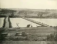 Le 11 décembre, le génie nordiste installa trois ponts flottants juste en face de Fredericksburg et trois autres à trois kilomètres en aval. Sur cette position, les hommes du génie ne subirent aucune attaque, contrairement à ceux qui installaient les pontons à Fredericksburg, qui furent attaqués par une brigade du Mississippi positionnée dans des tranchées, qui se mit à tirer dès que l'aube fit son apparition. Malgré la réaction des batteries nordistes, les tirailleurs sudistes continuèrent leurs tirs, jusqu'à ce que trois régiments nordistes furent débarqués par bateau à Fredericksburg et les chassent de leurs positions, avant de piller la ville désertée par ses habitants.