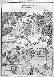 La Bavière, jusque-là alliée de la France dans la confédération du Rhin, adhère à la Sixième Coalition par le traité de Ried, conclu avec l'Autriche le 8 octobre 1813, et déclare la guerre à la France le 14 octobre. Après la bataille de Leipzig (16-19 octobre), Napoléon fait retraite, serré de près par les coalisés. Le 30 octobre, la cavalerie de Lefebvre-Desnouettes charge à plusieurs reprises la cavalerie russe et alliée, faisant de nombreux prisonniers, près de Bruchköbel et de Nieder-Issengheim[4]. Cependant, les retardataires désorganisent de plus en plus la Grande Armée. Elle est menacée sur son flanc par les 43 000 Bavarois et Autrichiens commandés par le feld-maréchal bavarois Karl Philipp von Wrede qui avancent en Franconie, au nord du Danube. Ils atteignent Hanau, bloquant l'itinéraire de Napoléon à Francfort. Croyant que le gros de l'armée française fait route plus au nord pour Coblence, Wrede pense faire face à seulement 20 000 hommes protégeant le flanc de l'armée principale.