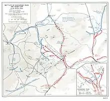 Conscients de ce manque de combativité de leurs adversaires, les troupes d'infanterie allemandes commandées par le général Karl Bülowius (en) attaquent le sans même une préparation d'artillerie. A leur grande surprise, la résistance est telle qu'ils doivent se replier. Bülowius comprend vite que l'étroitesse de la gorge ne lui permet pas d'attaquer de front. Il envoie alors ses hommes escalader les deux montagnes pour prendre les défenseurs à revers. Les quelques soldats français qui y sont retranchés sont vite débordés. À la fin de la journée, les lignes de défense américaines sont ainsi contournées. Malgré les onze chars britanniques arrivés en renfort dans la journée, de plus en plus d'unités s'enfuient, affolées par les tirs allemands qui semblent venir de tous côtés. Mais, contrairement aux promesses de Bülowius, les Allemands n'ont toujours pas franchi la gorge à la fin de la journée[C 3].