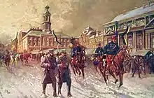 - (en) Russia's War with the Germans. The Capture of L'viv in Galicia. Prise de Lviv par l'armée russe, estampe populaire russe, 1914, sur wdl.org.