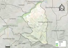 L'occupation des sols de la commune, telle qu'elle ressort de la base de données européenne d’occupation biophysique des sols Corine Land Cover (CLC), est marquée par l'importance des forêts et milieux semi-naturels (60,6 % en 2018), en augmentation par rapport à 1990 (58,2 %). La répartition détaillée en 2018 est la suivante : forêts (38 %), cultures permanentes (22,5 %), milieux à végétation arbustive et/ou herbacée (21,6 %), zones agricoles hétérogènes (9,3 %), zones urbanisées (4,9 %), zones industrielles ou commerciales et réseaux de communication (2,6 %), espaces ouverts, sans ou avec peu de végétation (1 %)[24]. L'évolution de l’occupation des sols de la commune et de ses infrastructures peut être observée sur les différentes représentations cartographiques du territoire : la carte de Cassini (XVIIIe siècle), la carte d'état-major (1820-1866) et les cartes ou photos aériennes de l'IGN pour la période actuelle (1950 à aujourd'hui)[Carte 1].