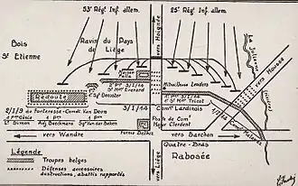 À l'aube du , le 1er bataillon du 9e régiment belge de forteresse quitte son cantonnement de Jupille pour occuper le secteur Meuse-Barchon ; la 2e compagnie relève, sur le plateau de Rabosée, une unité du 14e régiment d'infanterie de ligne. Le , détachée de son bataillon d'origine, la 2e compagnie est placée sous les ordres du major Clerdent du 14e de ligne. Chaque unité reçoit ordre de tenir sa position. Les forces de l'armée belge s'élèvent à 500 hommes de troupe et cinq officiers.