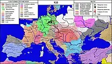 Les Magyars (Hongrois), nomades qui servaient comme mercenaires sous l'empereur Arnulf, commencent leurs raids dans le royaume d'Italie et en Francie orientale après la mort de l'empereur en 899. En 906, ils défont la Grande Moravie et, un an plus tard, anéantissent une armée bavaroise dirigée par le margrave Luitpold lors de la bataille de Presbourg.
