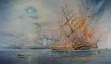 - La Bataille de Tchesmé huile sur toile, 100x140cm, par Vladimir Kosov