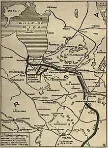 En , à l'issue de la Grande Retraite, l'armée impériale russe parvient à arrêter l'avance de l'armée allemande à une courte distance de Riga. La 8e armée allemande se retranche dans les marais de Tirel face à la 12e armée russe.