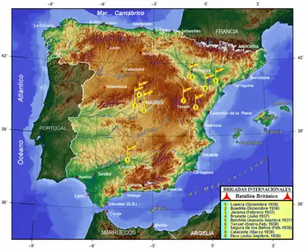 Par la suite, le bataillon Britannique participa également aux batailles de Teruel et de l'Èbre en 1938.