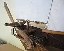 L’ancre était en bois très dur et alourdie par une grosse pierre avec le jas placé au niveau du diamant, caractéristique originale facilitant sa remontée.