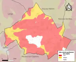 Le retrait-gonflement des sols argileux est susceptible d'engendrer des dommages importants aux bâtiments en cas d’alternance de périodes de sécheresse et de pluie. 92,7 % de la superficie communale est en aléa moyen ou fort (84,7 % au niveau départemental et 48,5 % au niveau national). Sur les 315 bâtiments dénombrés sur la commune en 2019, 308 sont en aléa moyen ou fort, soit 98 %, à comparer aux 86 % au niveau départemental et 54 % au niveau national. Une cartographie de l'exposition du territoire national au retrait gonflement des sols argileux est disponible sur le site du BRGM[23],[24].