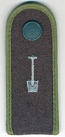Cette forme particulière de service militaire durait également 18 mois, tout comme le service avec arme. L'uniforme arborait une petite bêche sur les épaulettes, si bien que les objecteurs de conscience se désignaient entre eux comme « Spatensoldaten (litt. soldats de la bêche) » ou encore « spatis ». Des termes tels que « compagnies de travail » et « bataillons de travail » faisaient partie des créations de mots avant l'élaboration du texte de loi pour l'ordonnance sur les Bausoldaten en 1964. Afin de ne pas rapprocher linguistiquement les futures compagnie de construction d'une manière inquiétante des compagnies pénitentiaires de la Wehrmacht, on trouva finalement pour elles le terme plus inoffensif de « Baueinheit »[5]. Il faut les distinguer des « Bautruppen » (par exemple les « Eisenbahnbautruppen »), qui étaient certes également engagées dans la construction, mais qui étaient formées de conscrits réguliers.