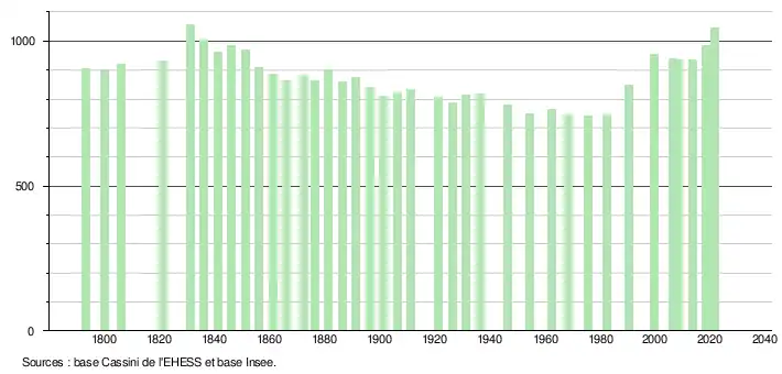 - Population municipale légale en vigueur au 1er janvier 2024, millésimée 2021, définie dans les limites territoriales en vigueur au 1er janvier 2023, date de référence statistique : 1er janvier 2021.