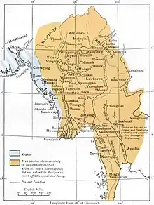 S'étant ainsi ressaisi de la Haute comme de la Basse-Birmanie, il lança une expédition contre les Shans du Nord-Ouest. Il s'empara de Mong Mit, Thibaw, Yawnghwe, Mong Yang et Mogaung en 1557.
