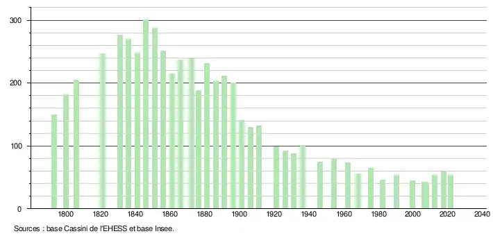 - Fiches Insee - Populations légales de la commune pour les années 2006, 2007, 2008, 2009, 2010, 2011, 2012, 2013, 2014, 2015, 2016, 2017, 2018, 2019, 2020 et 2021.
