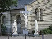 - Calvaire à côté de l'église : deux statues de la sainte Vierge et de saint Jean furent livrées à la construction de l'église en vue de sa décoration. Mais embarrassantes durant le chantier, la première fut enterrée à proximité du chantier et l'autre fut entreposée dans une propriété de l'aumônier de l'hôpital Beaujon. Tombées dans l'oubli, les statues sont redécouvertes par hasard en 1953. L'abbé d'alors décide l'édification d'un calvaire formé de ces deux statues[44].