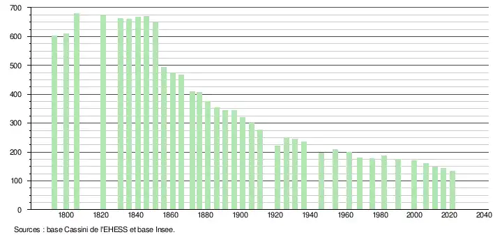 L'évolution du nombre d'habitants est connue à travers les recensements de la population effectués dans la commune depuis 1793. Pour les communes de moins de 10 000 habitants, une enquête de recensement portant sur toute la population est réalisée tous les cinq ans, les populations légales des années intermédiaires étant quant à elles estimées par interpolation ou extrapolation[17]. Pour la commune, le premier recensement exhaustif entrant dans le cadre du nouveau dispositif a été réalisé en 2006[18].