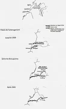 Notre époque reste largement tributaire de cette époque pionnière sous la forme de la chaîne de centrales qui se succèdent de manière ininterrompue du lac de la Girotte jusqu’au confluent, à Venthon, du doron de Beaufort et de l’Arly. De la période pionnière (avant 1920) datent les centrales situées à l’aval : Venthon (1899), Roengers (1919) et Queige (1909). La chaîne a été complétée entre les deux Guerres mondiales par les centrales de Villard (1929), de Beaufort (1922), d’Hauteluce (1932) et de Belleville (1923), au pied du lac de la Girotte.