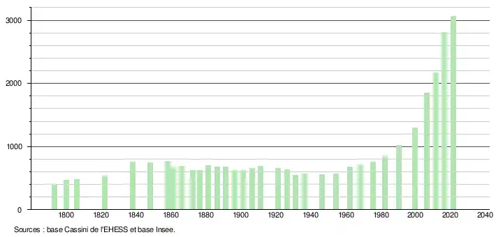 En 2021, la commune comptait 3 063 habitants[Note 3], en augmentation de 14,08 % par rapport à 2015 (Haute-Savoie : +5,99 %, France hors Mayotte : +1,84 %).