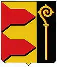 Blasonnement : D'or palissé en fasce de deux pièces de gueules, senestré de sable à une crosse abbatiale d'or le crosseron tourné à senestre.