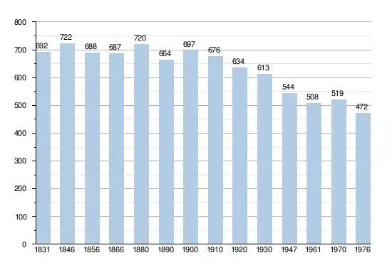 - Sources : INS, Rem. : 1831 jusqu'en 1970 = recensements, 1976 = nombre d'habitants au 31 décembre.