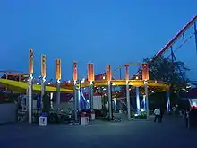 La zone de chargement et de déchargement se trouve dans un bâtiment de deux étages[3]. Dans la zone d'embarquement, des casiers destinés à recevoir les objets pouvant être perdus durant le parcours sont à disposition du public[11].