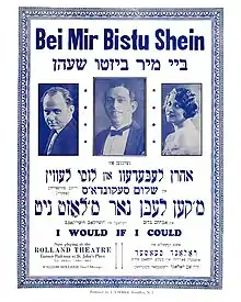 Bei Mir Bist Du Shein (בייַ מיר ביסטו שיין, en yiddish, Bei Mir Bist Du Schoen, en yiddish germanisé, Pour moi tu es belle, en français, To Me You're Beautiful, en anglais)[1] est une célèbre chanson d'amour populaire traditionnelle yiddish, composée à l'origine sous le titre Bei Mir Bistu Shein par les auteur-compositeur Jacob Jacobs (paroles) et Sholom Secunda (musique) pour la comédie musicale yiddish I Would if I Could de 1932[2]. The Andrews Sisters (les sœurs Andrews) deviennent des stars internationales de l'histoire du jazz avec la célèbre version standard du jazz swing-jazz-yiddish américaine Bei Mir Bist Du Schoen de 1937[3].