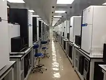 Le séquençage "de novo" implique d'aligner des milliards de séquences d'ADN pour reconstruire le génome entier. Un bioinformaticien de BGI a développé le premier algorithme basé sur la théorie des graphes nommé SOAPdenovo capable d'assembler un génome en 2 jours[20]. En 2010, l'entreprise disposait d'un supercalculateur capable de traiter 10 téraoctets de données de séquençage toutes les 24 heures à partir des analyseurs. Le budget annuel de ce centre de bioinformatique était de 9 millions de dollars US en 2010[43]