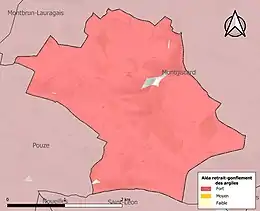 Le retrait-gonflement des sols argileux est susceptible d'engendrer des dommages importants aux bâtiments en cas d’alternance de périodes de sécheresse et de pluie. 99,2 % de la superficie communale est en aléa moyen ou fort (88,8 % au niveau départemental et 48,5 % au niveau national). Sur les 46 bâtiments dénombrés sur la commune en 2019, 46 sont en aléa moyen ou fort, soit 100 %, à comparer aux 98 % au niveau départemental et 54 % au niveau national. Une cartographie de l'exposition du territoire national au retrait gonflement des sols argileux est disponible sur le site du BRGM[24],[Carte 3].