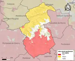 Le retrait-gonflement des sols argileux est susceptible d'engendrer des dommages importants aux bâtiments en cas d’alternance de périodes de sécheresse et de pluie. 83,2 % de la superficie communale est en aléa moyen ou fort (67,7 % au niveau départemental et 48,5 % au niveau national). Sur les 317 bâtiments dénombrés sur la commune en 2019, 235 sont en aléa moyen ou fort, soit 74 %, à comparer aux 72 % au niveau départemental et 54 % au niveau national. Une cartographie de l'exposition du territoire national au retrait gonflement des sols argileux est disponible sur le site du BRGM[29],[Carte 2].