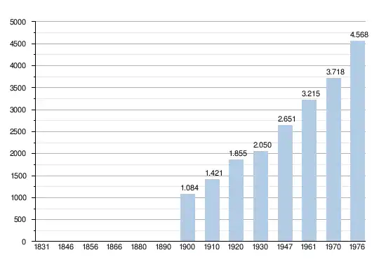 - Sources:INS, Rem:1831 jusqu'en 1970=recensements, 1976= nombre d'habitants au 31 décembre