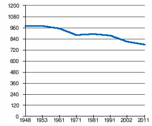 En 2002, l'âge moyen de la population était de 43,3 ans pour les hommes et 46,5 ans pour les femmes[8].