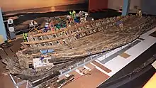 Concernant les bois de construction de la coque du navire, ils ont été démontés un par un et mesurés. Le traitement aurait dû être fait avec du PEG mais à partir des années 2000, son coût ayant augmenté considérablement, les conservateurs ont décidé d'utiliser la lyophilisation comme la dernière étape pour le traitement de la coque. Ils font construire sur-mesure un grand séchoir à froid (60 degrés au-dessous du zéro) et font le vide afin de sécher le bois sans risque.