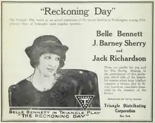Belle Bennett dans une publicité pour The Reckoning Day (1918).