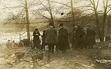 Le , un incendie ravage sa maison de La Porte. Les corps de ses enfants et d'une femme décapitée sont découverts dans les décombres, laissant penser à la mort de Belle Gunness[7]. Toutefois, des doutes apparaissent rapidement lorsque plusieurs voisins et amis affirment que le corps de la femme découvert ne correspond pas à la morphologie de la fermière (1,83 m et 90 kilos). Ces déclarations ont été accréditées par des mesures prises sur le cadavre, comparées à ces différents témoignages. L'autopsie a par ailleurs démontré que cette femme était morte d'un empoisonnement à la strychnine. Les autorités concluent donc dans un premier temps que le corps découvert dans la ferme n'est pas celui de Belle Gunness. Mais peu après, une prothèse dentaire identifiée comme appartenant à Belle Gunness est retrouvée dans les cendres de la maison, conduisant le shérif à déclarer officiellement Belle Gunness décédée dans l'incendie. Toutefois, de nombreuses interrogations existent encore sur le sort réel de Belle Gunness.