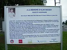 - Alan Seeger, poète américain, engagé dans la Légion étrangère au service de la France, en 1914, mort à Belloy-en-Santerre lors de la bataille de la Somme en 1916. Il fut décoré à titre posthume de la Médaille militaire ainsi que de la Croix de guerre 1914-1918 avec palme[46]