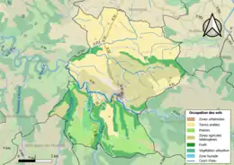 L'occupation des sols de la commune, telle qu'elle ressort de la base de données européenne d’occupation biophysique des sols Corine Land Cover (CLC), est marquée par l'importance des territoires agricoles (77,5 % en 2018), en augmentation par rapport à 1990 (75,6 %). La répartition détaillée en 2018 est la suivante : terres arables (38,6 %), zones agricoles hétérogènes (23,5 %), forêts (17,7 %), prairies (15,4 %), milieux à végétation arbustive et/ou herbacée (2,6 %), zones urbanisées (1,4 %), espaces verts artificialisés, non agricoles (0,8 %)[25].