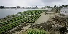 Tables ostréicoles dans la Rivière du Sac'h à marée basse.