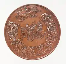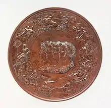 Médaille du couronnement de George IV (1821). Remarquez le roi surélevé.