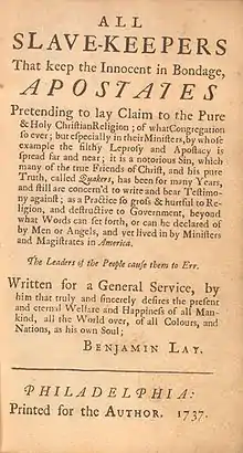 - Benjamin Lay, All Slave-keepers that keep the Innocent in Bondage, Apostates, Philadelphie, (lire en ligne)