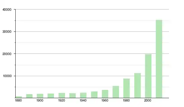 Sa population augmente rapidement puisqu'en 1990 celle-ci était de 11 257 habitants.