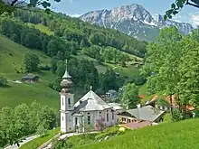 L'église de pèlerinage de Maria Gern et le sommet du Berchtesgadener Hochthron.