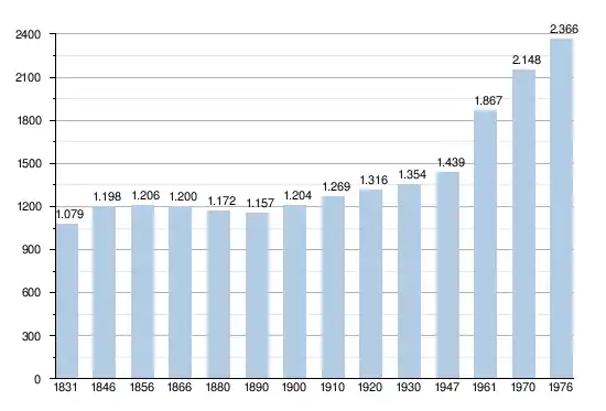 - Sources : INS, Rem. : 1831 jusqu'en 1970 = recensements, 1976 = nombre d'habitants au 31 décembre[2].
