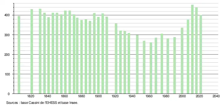 (Sources : Ldh/EHESS/Cassini jusqu'en 1999[23] puis Insee à partir de 2006[24].)