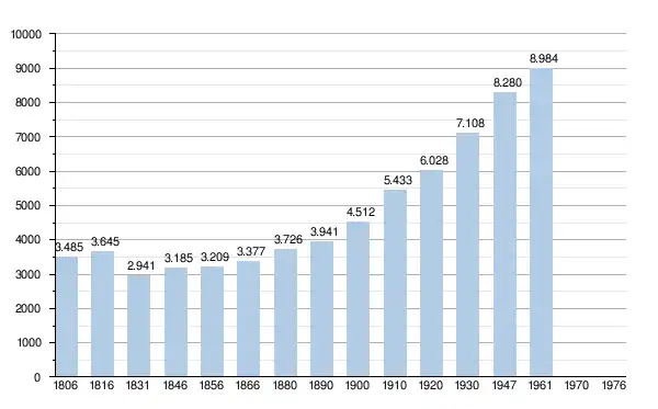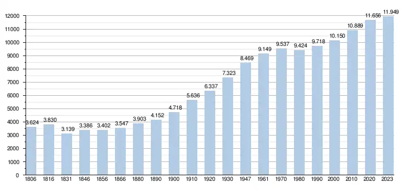 - Source : DGS - Remarque: 1806 jusqu'à 1981=recensement; depuis 1990=nombre d'habitants chaque 1er janvier[7]