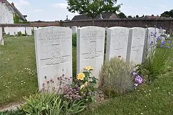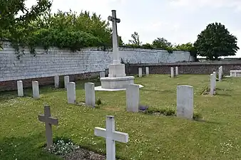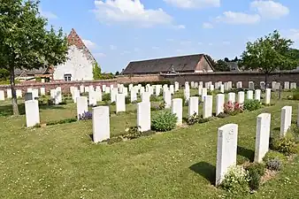 Il y a maintenant 144 sépultures du Commonwealth de la guerre 1914-1918, dont deux ne sont pas identifiées sur ce site. On y trouve également 44 sépultures françaises et une allemande de la guerre 1914-1918 et huit sépultures allemandes de la guerre 1939-1945[1].