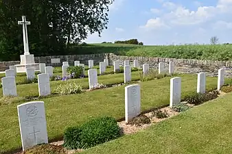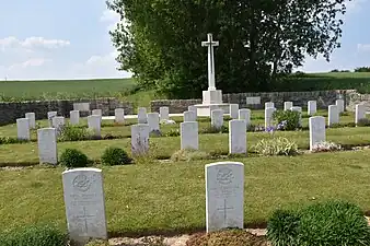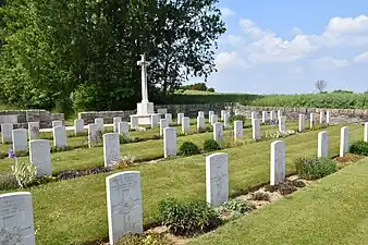 Toutes les victimes britanniques inhumées dans ce cimetière sont tombées dans les combats sporadiques contre l'ennemi pour tenter de percer la ligne de front de à , date à laquelle les Allemands se replieront sur la Ligne Hindenburg, le front reculera alors d'une vingtaine de km à l'est.