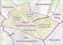 Carte de Neu-Hohenschönhausen et des quartiers limitrophes.