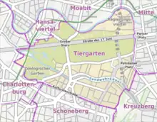 Noter que, plus au nord (au delà de Sprée) dans Berlin-Moabit, se trouve le "Petit-Tiergarten (de)".