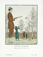 Parallèlement à sa carrière de peintre et de graveur — et de manière plus alimentaire — Bernard Boutet de Monvel livre très régulièrement des dessins d’illustration humoristiques, et surtout des dessins de mode, à des revues comme Femina ou Jardin des modes nouvelles… Le couturier Paul Poiret, qui a très tôt admiré son talent, s’assure, dès 1908, la collaboration du peintre qui passe, en raison de sa grande beauté et pour son goût irréprochable, pour le prince des dandys parisiens. La rencontre de Bernard Boutet de Monvel avec l'éditeur Lucien Vogel, lors d’un vernissage de ses œuvres à la galerie Barbazanges en 1911, sera à l’origine de sa collaboration très active à la Gazette du bon ton[25], dont le premier numéro parait à la Librairie centrale des beaux-arts en novembre 1912. Il y retrouve son cousin Pierre Brissaud, Georges Lepape, Charles Martin, George Barbier… Cette même année, il devient également collaborateur du Journal des dames et des modes, que relance Georges Barbier, Paul Poiret et Tommaso Antogini.