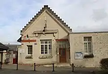 Vue partielle de la place Roger-Ambroise, avec la mairie et l'église. | |||||